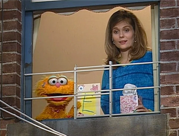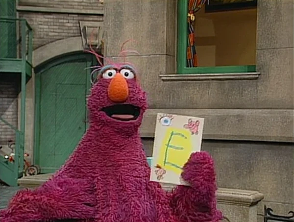 SCENE 2 | Telly reports Big Bird's message to Zoe, who wishes he could've seen her letter E drawing. Telly offers to deliver it and proudly takes off to pick it up (scored by "Ride of the Valkyries"). |
