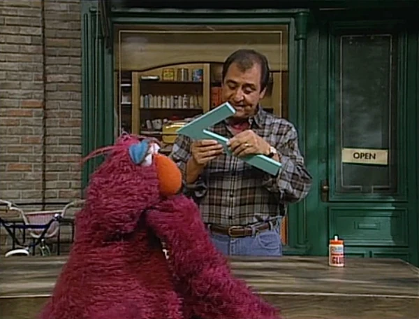 SCENE 4 cont'd | Telly trips and breaks the number 7 in half, which Oscar admires. Telly rushes to the Fix-It Shop to get it fixed. |