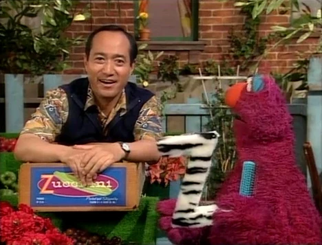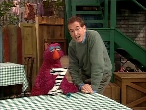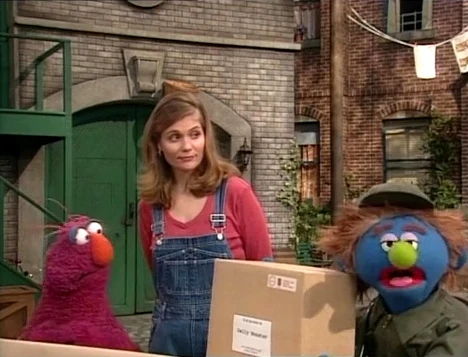 SCENE 1 cont'd | Telly really liked the film and the delivery man (Kevin Clash) finally arrives, though Telly recognizes that he is not the regular delivery person he sees. The man has several packages bearing various "... of the Month" labels and has one for what Telly assumes is himself. He and Gina open the box and are surprised to find a zebra-skinned letter Z inside, courtesy of the Z of the Month Club. They check the label and find the package was meant for Delly Monster. Telly worries about his triangle and finds the idea of collecting letter Zs ridiculous. Gina suggests they call Delly on the Hooper's Store phone. |