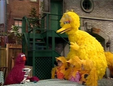 SCENE 3 cont'd | Big Bird and the Birdketeers find Telly taking care of the Z and invite him to join their Z activities. They make the Z sound and zoom around like airplanes, which Telly finds very fun. |