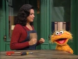 SCENE 1 | Today is Linda's birthday, and for a surprise, Bob is teaching Maria, Gabi, Alan, Rosita, Zoe, Snuffy, and Baby Bear how to sing "Happy Birthday to You" in sign language. He dubs the group "the Signing Singers" and proceeds to show the viewer the signs they are practicing. Snuffy brings up the fact that he can't sign most of the words since he's got a snuffle instead of hands, so Bob gives him the position of conducting the group. Linda jogs by, but becomes confused when everyone suddenly has to leave at the same time. |