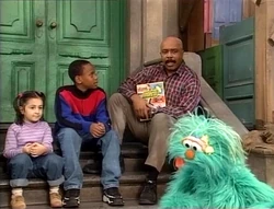 SCENE 4 | Rosita looks for A words at the Fix-It Shop and Maria helps her identify some, including the passing ant. Big Bird is following behind and wishes he could take a break to eat. Rosita says she'll follow in his place and goes off with the ant, while Maria and Big Bird chow down on their respective snacks. |