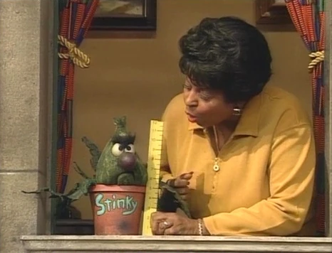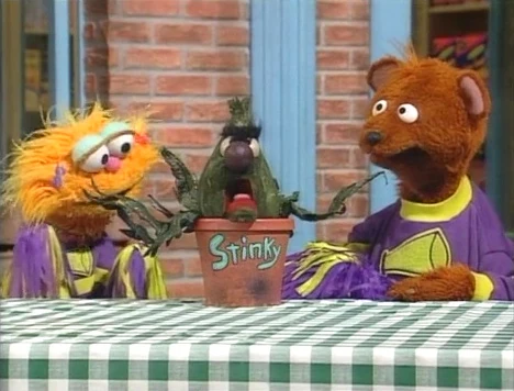 SCENE 8 | Susan learns that Stinky has become a cheerleader. After a cheer about Hooper's Store, Stinky suddenly feels something happening inside and he grows a new flower. Susan gets a ruler from Alan and finds that Stinky has grown two inches taller! Everybody celebrates with more cheering. |