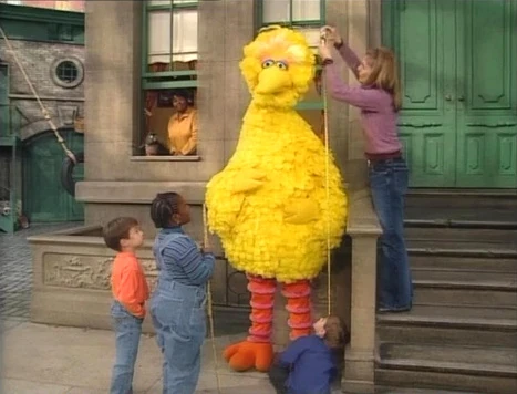 - Gina says that Big Bird is almost 93 inches (or 7 ft. 9 in.) tall in this episode, rather than his usually established 8 ft. 2 in.