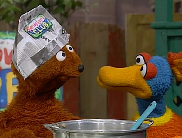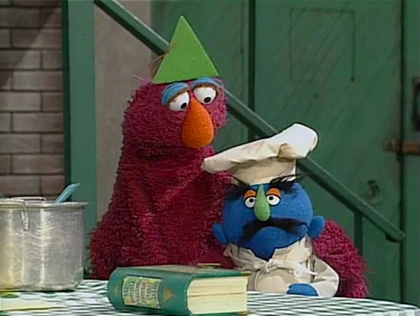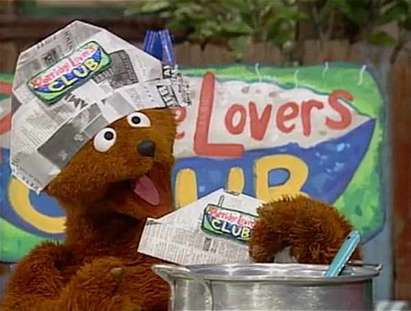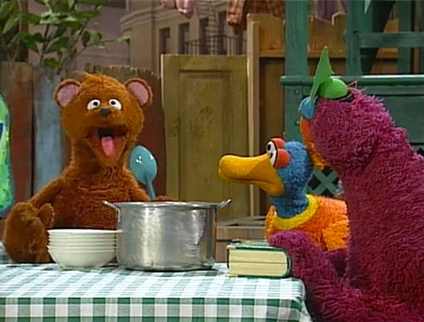 SCENE 7 | Baby Bear isn't getting any response for his club. He begins to spread the aroma of it, which starts attracting a few potential members. Among them are Susan (whom Gordon wasn't even aware loved porridge), Grundgetta (who prefers her porridge with anchovies), a couple of kids, and even the Grand High Triangle Lover himself! Susan begins to help dish out some bowls as Telly stands in amazement of the number of porridge lovers there really are. |
