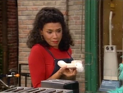 SCENE 8 | Ernie permits them to borrow his Rubber Duckie and they show it to Maria, who checks it off their list. Ernie immediately phones Maria to bring back his Duckie and her cellular phone spits out bubbles (he's calling from the bathtub)! |