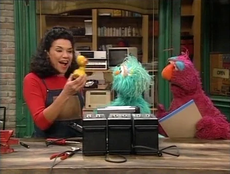 SCENE 1 | Rosita and Telly arrive at the Fix-It Shop for their checker game with Maria, only to find she's now swamped with toasters to fix. Maria then proposes the monsters go on a scavenger hunt and bring back three unique items. She has the list prepared with the caveat that they must find them before she finishes fixing all the toasters. The first item on the list is a saxophone. They realize their only sax-playing friend, Hoots the Owl, is on tour, so it's off to find a different saxophone! |