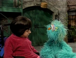 SCENE 4 | Rosita meets Tarah and tells her about her quest for wing uses. It reminds Tarah of what she goes through being in a wheelchair; she can't walk with her legs, but she can still race with her friends. Rosita can't run very fast, but Tarah suggests maybe she could go faster if she flapped her wings. She turns out to be right when the two race each other, and Rosita zooms down the street. She also finds that her wings aren't very useful in helping her spin, though. |
