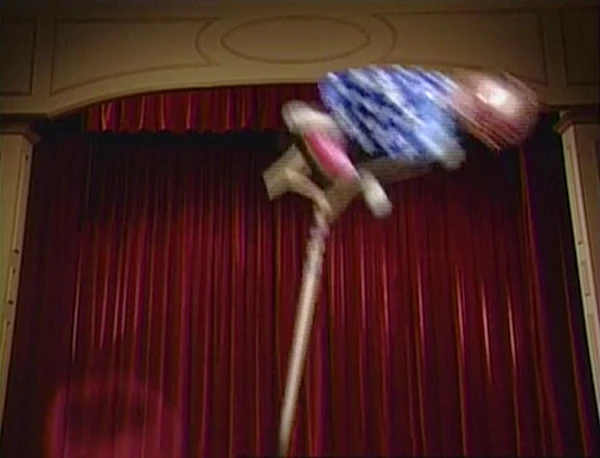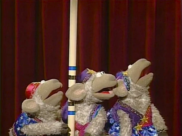 Muppets | A quartet of lambs do a daredevil act on stage, which involves the first two lambs balancing a chair on top of a pole, the third lamb firing a cannon, and the fourth lamb landing in the chair after being shot out of the cannon. When the act fails, vaudeville team Big Bird and Snuffy take the stage, and introduce the letter of the day with a joke. |