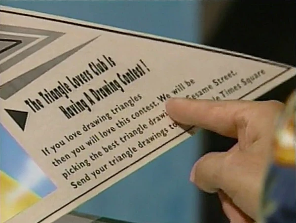 SCENE 1 | Telly shows Alan the latest issue of The Triangle Times, the official publication of the Triangle Lovers Club. They look at some of the latest three-sided news when Telly comes across an interesting article - the Triangle Lovers Club is holding a triangle drawing contest! Telly rushes off to start working on his submission. |