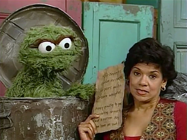 SCENE 2 | Maria has written a birthday poem for Oscar. He becomes annoyed at first as it's in Spanish, which he doesn't understand much. Maria reads it and Oscar catches her being nice: the poem contains the words "feliz" and "día," the Spanish words for "happy" and "day." Oscar is surprised by how awful the full message is when translated to English: "Happy greeting to you, irritating Grouch. Have a rotten day from here on out!" |