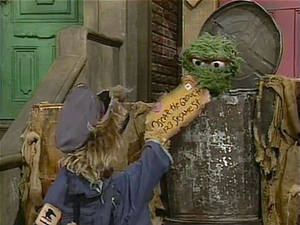 SCENE 1 | A Grouch postwoman (Alice Dinnean) delivers a letter to Oscar; it's from his mother, wishing him a happy birthday. Telly overhears and wishes to celebrate, but Oscar says he doesn't want a happy birthday like most people enjoy. Telly proposes a "grouchy birthday" instead, but Oscar bets him that not one person on Sesame Street can do something grouchy for his birthday. Telly makes it his goal to prove Oscar wrong. |