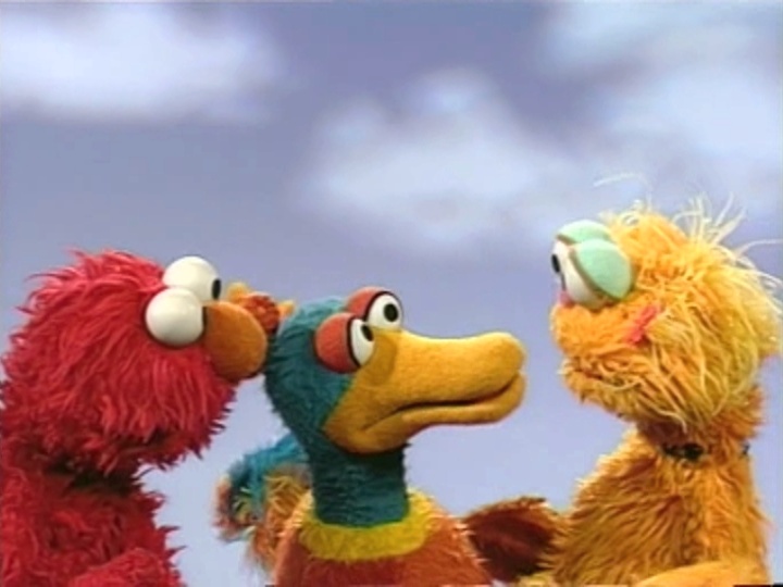 Muppets | Zoe finds Elmo pretending to be a duck, and he shows her how to act like one. A real duck shows up, and mistakes Zoe for its mama. cut from the Noggin version |