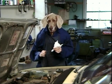Film | The people in your neighborhood, as demonstrated by Wegman's dogs. Today, the auto mechanic, whose treatment of a customer's car is dubious. (First: Episode 3801) cut from the Noggin version |