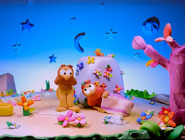 Animation | Two clay cavemen play with blocks together, until Red gets hurt, and holds a grudge against Brown. As Red sleeps, it becomes chilly and windy, so Brown covers him up with a blanket. The two are friends again. (First: Episode 4071) This segment replaced the camping trip cartoon in the Sprout version. |