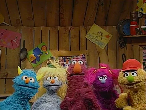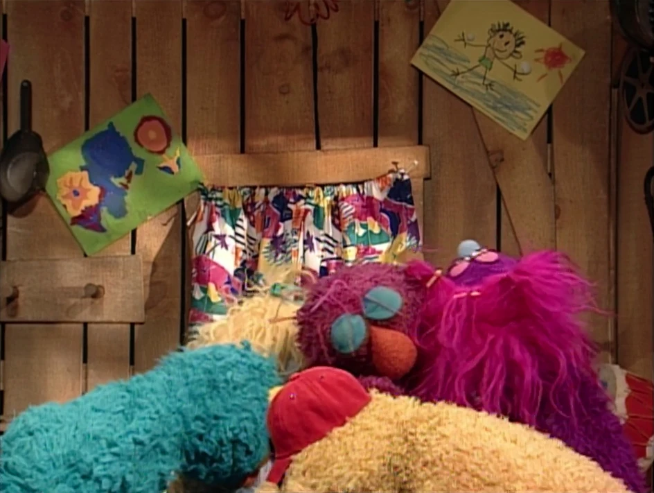 SCENE 1 | Four young monsters welcome Telly to the clubhouse: Nelson (Jerry Nelson), Lily (Alice Dinnean), Maurice (Joey Mazzarino), and Lulu. They wonder what surprise Telly has for them today, and he reveals it's a field trip around Sesame Street. None of them are excited about it until Telly explains to them what a field trip is. They think it sounds like fun and start bouncing around chanting "Field trip! Field Trip!" - all except the slightly introverted Lulu, who feels nervous since she has never been on a field trip before: "It sounds so... new." |