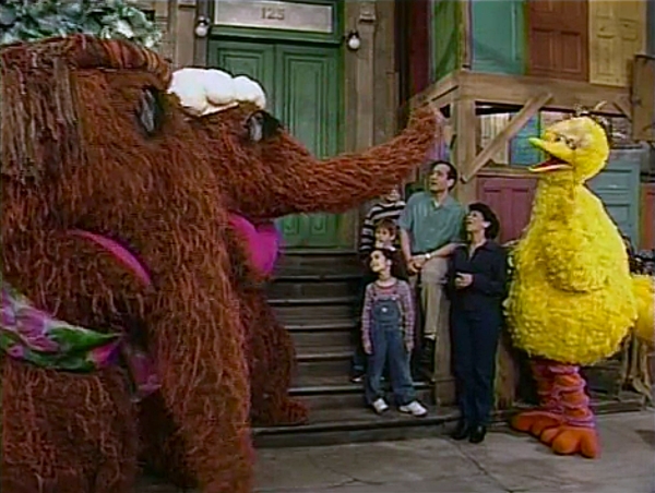 - Mrs. Snuffleupagus' hat is the same one she receives in Episode 3551, only modified to remove the S on top.