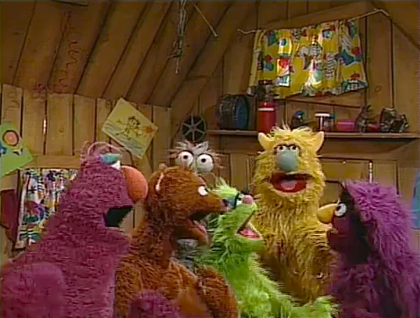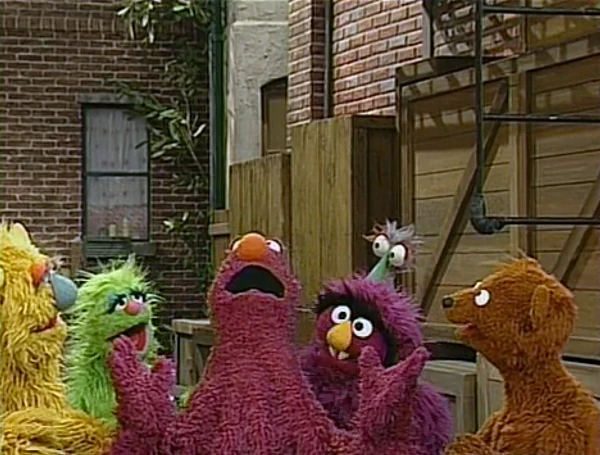SCENE 8 | Baby Bear, Telly, and the monsters sing "I've Been Working on the Railroad" as Gordon announces the sponsors from outside. The credits follow. |