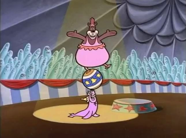 Cartoon | A seal and a bear fight over a circus ball, but learn to cooperate. Artist: Frank Gresham (First: Episode 3282) This segment replaced the ice cream cartoon in the Sprout version. |