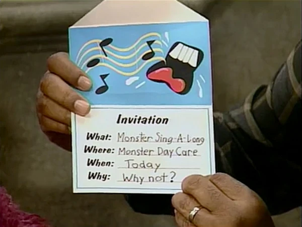 SCENE 1 | Gordon welcomes the viewer when Telly and Baby Bear immediately rush to him and ask him to read their mail. Telly's letter turns out to be an invitation to the Monster Sing-A-Long that's happening today at the Monster Day Care. Baby Bear thinks it sounds like fun and hopes his mail is an invitation as well, but when Gordon reads it, the message turns out to be an advertisement for 20% off drapes at Glackin's Window Treatment Palace. Baby Bear becomes disappointed and wonders why he didn't get an invitation, too. |