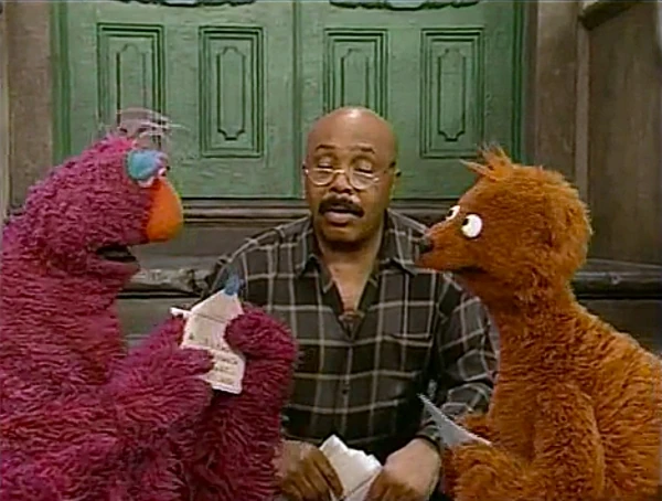Muppets / Celebrity | Spike Lee directs Snuffy in "The Summer of Snuffy," in which Snuffy is supposed to be sad that Big Bird can't play cabbage volleyball with him at the beach today. Snuffy, however, feels too happy today to pretend to be sad, so he and Spike switch roles. |