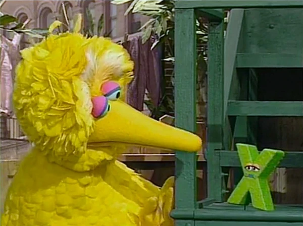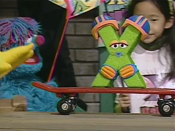 SCENE 6 | Back at the X Games, Telly and Baby Bear cover the little Xβs trick. With the help of Big Birdβs pushing and pulling, he is able to roll back and forth, much to his and the crowdβs excitement. The reporters get an interview with the X, who thanks his friends (A, B, C, D, etc.) and his coach, Big Bird. |