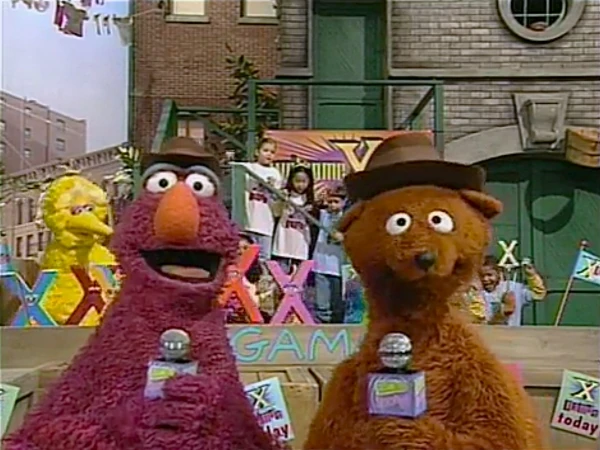 SCENE 1 | Gordon sits on the stoop, reading his newspaper and sees a bunch of kids and monsters running by chanting βX Games! X Games!β Telly and Baby Bear rush in and fix themselves up so they can introduce βThe Wide World of Sesame Street Sportsβ which is covering todayβs βX Games,β the event where letter Xβs come from all over the globe to Sesame Street to play games. They are then joined by a group of screaming female Xβs and tell the viewer to stay tuned for more βX Gamesβ action! |