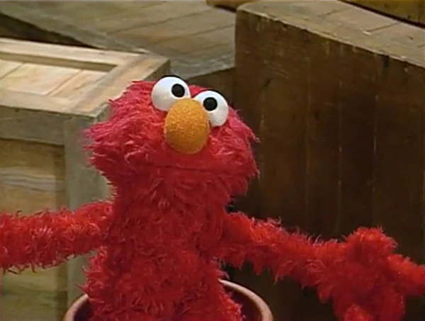 SCENE 2 | Elmo gets inside his pot (with his name scribbled on it just like Stinky's) and wonders what kind of plant he is. Stinky calls him a "furry red monster plant," a name which Elmo likes. Elmo wonders what plants do, and according to Stinky, they just sit around and enjoy the sun. Elmo stretches his arms out like leaves and enjoys it at first, but soon realizes, "It's not easy being a plant..." |