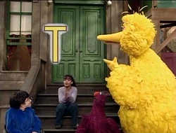 SCENE 7 | The group has followed the T all the way down to the other end of the street, where they find the Ts are throwing a "T Party!" Some Ts do the tango, others tickle each other, and some play tag. One T tags Big Bird, and they begin joining the fun. |