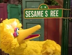 SCENE 1 | Big Bird (played by Matt Vogel) welcomes the viewer and notices the letter Ts from the street sign suddenly come off. "What's going on?!" he cries. |
