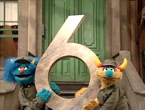SCENE 7 | The monster movers carry a giant marble number 6 into frame to show to the viewer. |