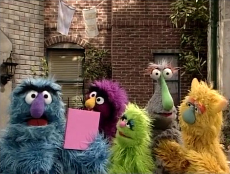SCENE 2 | The day care monsters run around the yard shouting, "Where square? Where square?" until their friend Herry shows them one. |