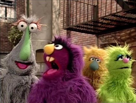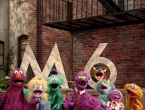 SCENE 1 | The letter M sits in the middle of the yard as majestic music plays. Telly and Elmo point out that M is for "Monsters." Zoe and Rosita show up, making them "More Monsters"; Humphrey, Ingrid, Natasha, and Lulu pop out from behind the M, and now there are "Many Monsters" - which is what Elmo says they'll be seeing on Sesame Street today. |