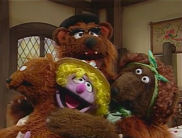 Baby Bear tells Big Bad that he's doing more damage than the real Goldilocks, who enters at that very moment. Baby Bear is uncharacteristically very happy to see her, but Goldilocks becomes offended when she realizes they were doing their story without her and storms off. |