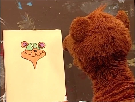 SCENE 2 | Baby Bear wraps up his finger exercises and wonders how he should go about drawing his superhero. He starts with a head, then the eyes, nose, mouth, and ears, all of which resemble his own. Inspired, he starts adding more and more... |