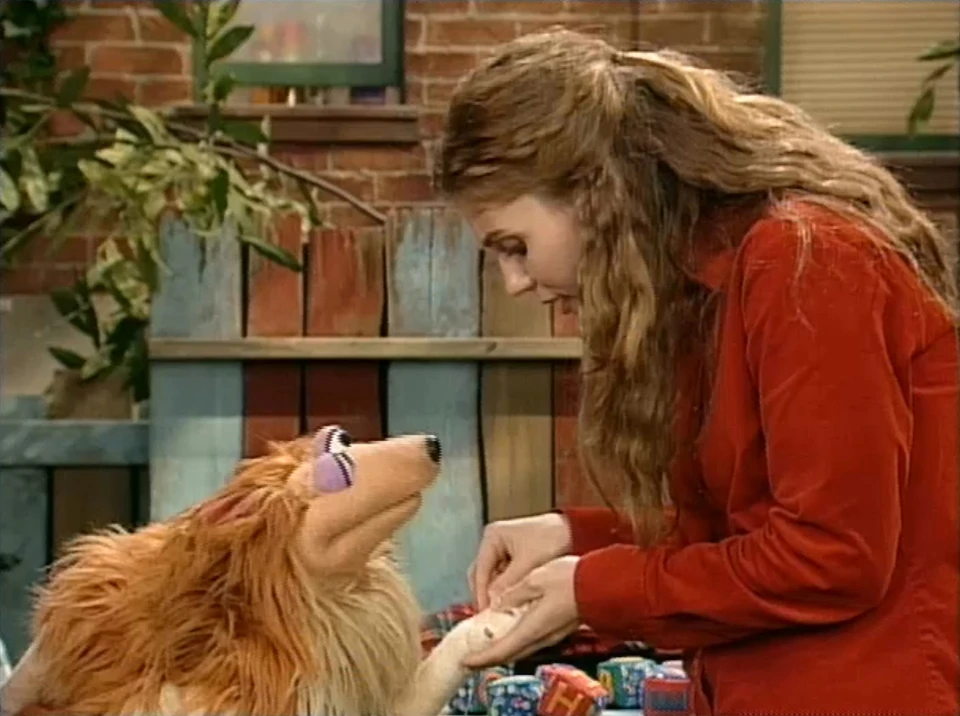 SCENE 5 | Elmo wakes up and tip-toes out as Hannah continues her nap from her stroller. Suddenly, Telly rushes in with some Muppet animals, all in distress. Telly points out that if Gina starts taking care of a new baby, she won't have time to tend to sick animals as a veterinarian. Gina clarifies that Hannah's mother will be around to take care of her as well as babysitters, leaving herself plenty of time to tend to her patients. She is able to illustrate this by removing the thorn from a dog's paw. Telly is relieved: "What a woman!" |