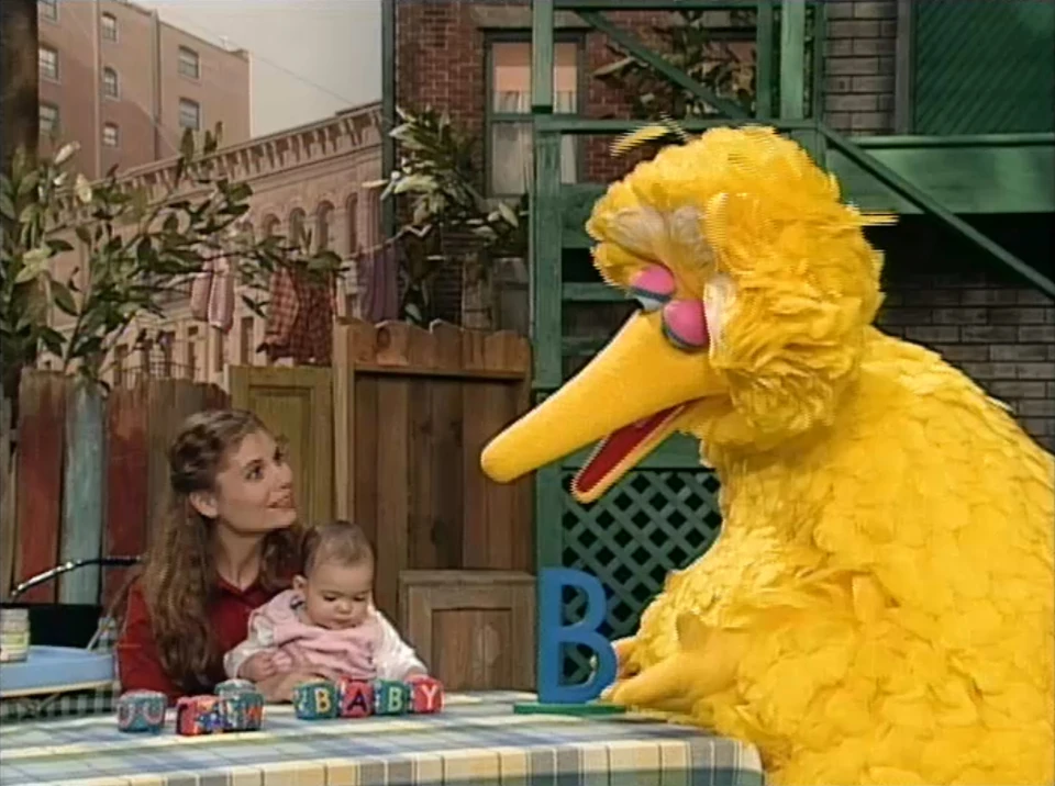 SCENE 3 | Big Bird now teaches Hannah all about the letter B, even using her blocks to form the word "baby." He and Gina then try to point her attention to the following... |