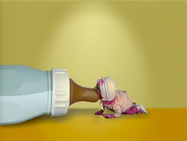 Muppets | Natasha finally reaches her goal: a giant baby bottle! She drinks up all the milk, and lets out a large burp. (First: Episode 3771) |