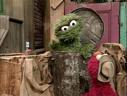 SCENE 5 | Elmo comes by Oscar's trash can, where Oscar and Slimey are waiting for the worm bus to arrive. When Slimey compliments Elmo's hat, he begins to have another fantasy... |