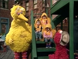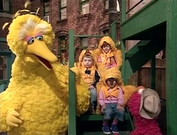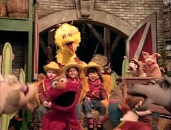 SCENE 2 | Big Bird and the Birdketeers assemble to sing "The Alphabet Song" on the garage steps. Big Bird invites Elmo to join along, and Elmo imagines how the meeting would be in the wild, wild West... |