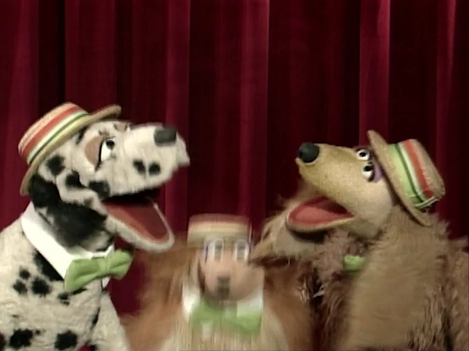 Muppets | A trio dogs bark "Jingle Bells" until they are yanked from the stage. Big Bird and Snuffy enter and say how there's nothing like a good dog act. "And that was nothing like a good dog act!" |