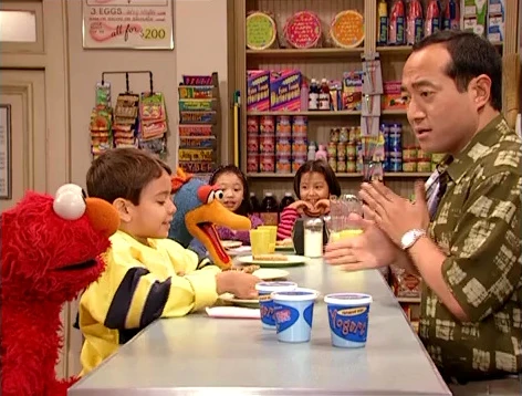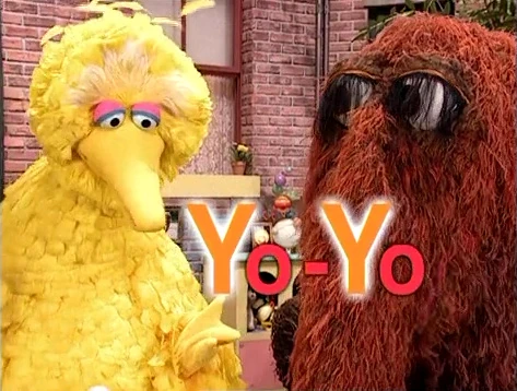 SCENE 2 cont'd | At Hooper's Store, Alan wraps up a phone order from the Count (who wants over 300 peas delivered). Elmo comes in and asks Alan to be their teacher, but he has many customers to tend to. He is able to teach Elmo the sound of the letter Y, and how it starts the word "yogurt" (like the containers he has). Richie also lets Elmo borrow his yo-yo. Elmo reports back to Big Bird and Snuffy with his findings. They think there's even more they can learn about Y, so Elmo goes off again while Big Bird and Snuffy have another recess break. |