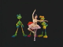Muppets | Journey to Ernie Ernie wasn't there, so Big Bird checks behind the statue... (First: Episode 3982) ... where he finds himself in the middle of a discotheque playing a funky version of "Rubber Duckie." He spots a box that sprouts eyes and legs, and encourages Big Bird to imitate its dance steps. (First: Episode 3982) We found him!