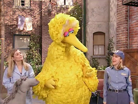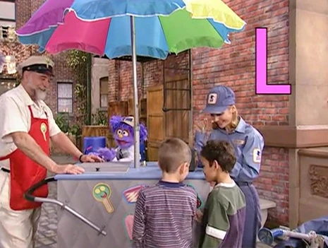 SCENE 3 | Big Bird announces the sponsors as Lulu asks the ice cream vendor endless questions about his job. ("Can you recommend certain colleges and universities? Is there an internship program? Did you major in frozen foods?") |