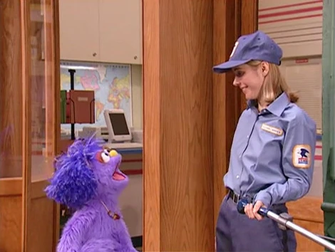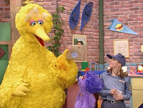 SCENE 2 cont'd | They arrive at Big Bird's nest to deliver a package, but Big Bird isn't there and the package doesn't fit in his mailbox. Ms. Camp decides to call over Gordon and has him give the package to Big Bird. Additionally, she writes a note for Big Bird so he will know where his package is. Lulu reiterates Ms. Camp's process, not immediately realizing that Big Bird has arrived, so now Ms. Camp only has to hand him the package. Ms. Camp tells Lulu that she has to deliver mail to other streets and says good-bye. Lulu desires to be a letter carrier like Ms. Camp, but she concedes with waiting until she's grown up. Big Bird mentions that she can pretend to be one right now; Lulu compliments Big Bird's idea and goes off to try it. |