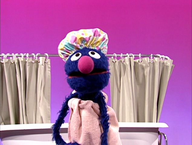 Muppets | Global Grover: Grover has just taken a trip all over the globe and learned about the different ways people bathe. The film clip features Kevin Clash singing "This is How We Take a Bath." Dirty from his trip, Grover intends to clean up himself, but there is no water coming out of the faucet. An elephant named Stevie helps him out by using his trunk as a shower head. cut from the YouTube version |