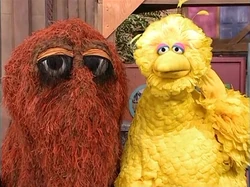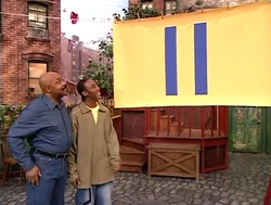 SCENE 2 | Big Bird and Snuffy play a "Guess That Sound" game by listening to the sounds of the street. They correctly guess the sounds of a girl's bicycle bell and Tyler dribbling a basketball before they hear what sounds like a tapping noise. Snuffy says it might be a tap-dancing wolf and the two find the idea silly until Leonard dances by, confirming their guess. |