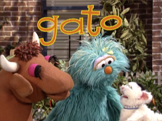 Muppets | Spanish Word of the Day: gato A cow tries to help Rosita by illustrating gato, but she isn't a cat. Suddenly Little Murray Sparkles comes by and Rosita replies that this is what gato is. (First: Episode 3985) |
