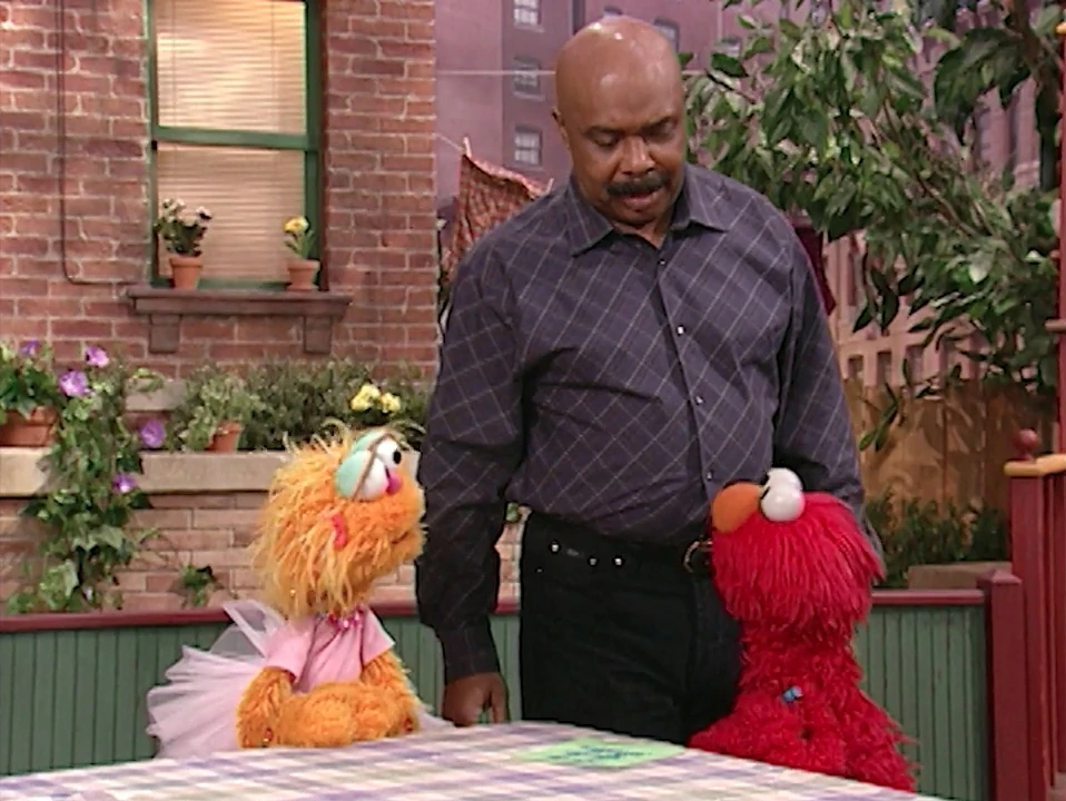 SCENE 2 | In the yard, Elmo and Zoe try to find a word that rhymes with "fish" to finish writing their poem similar to Cookie Monster's poem for cookies. Zoe wants to include the word "oyster" in their poem, but Elmo doesn't since it doesn't rhyme. Gordon gets them to compromise by including the word "oyster" as well as one more rhyming word. Elmo comes up with "schmish," and their poem is complete. |