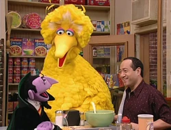 SCENE cont'd | Alan and Big Bird read the recipe, which dictates they must prepare the cookies with a song. Big Bird wonders how many cookies the recipe will make, when The Count appears and helps them count the lumps of cookie dough they lay in the pan. |